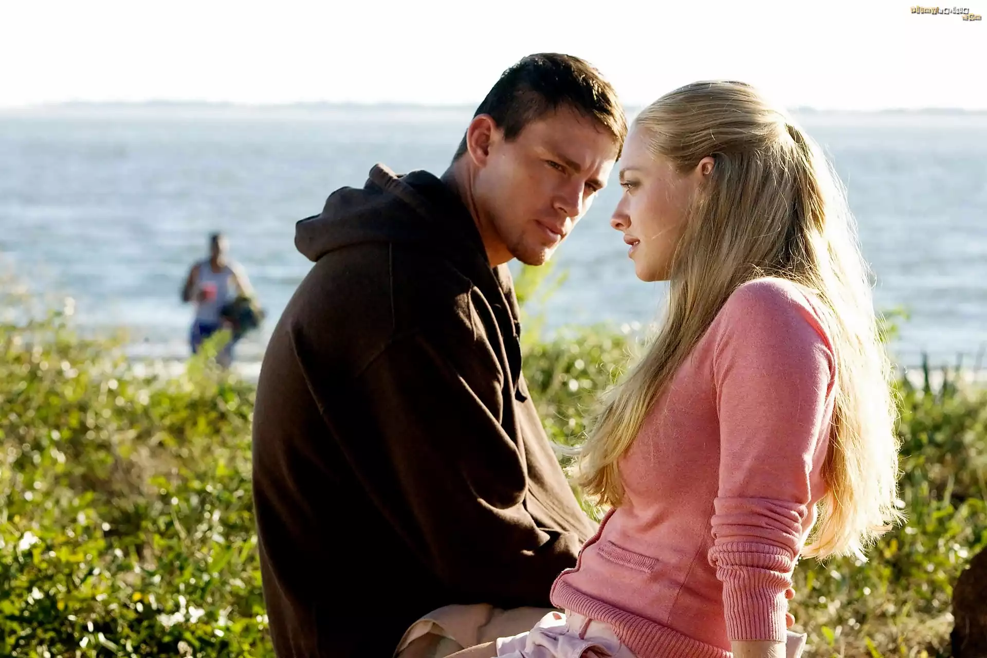 Film, Dear John, Wciąż ją kocham, Aktor, Channing Tatum, Aktorka, Amanda Michelle Seyfried, Morze, Para, Rozmowa |