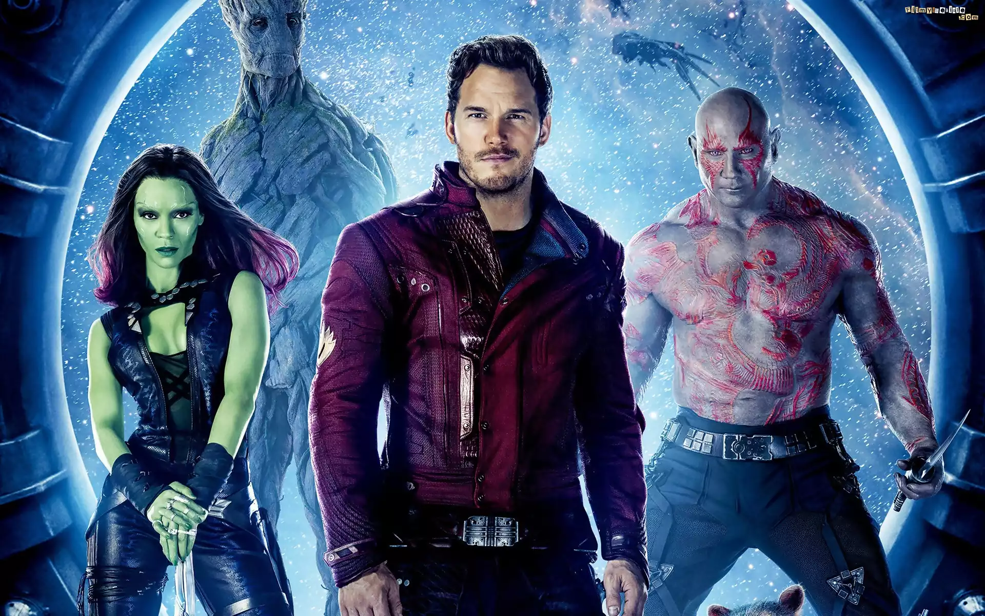 Film, Strażnicy Galaktyki, Aktorka, Zoe Saldana, Aktor, Chris Pratt, Dave Bautista