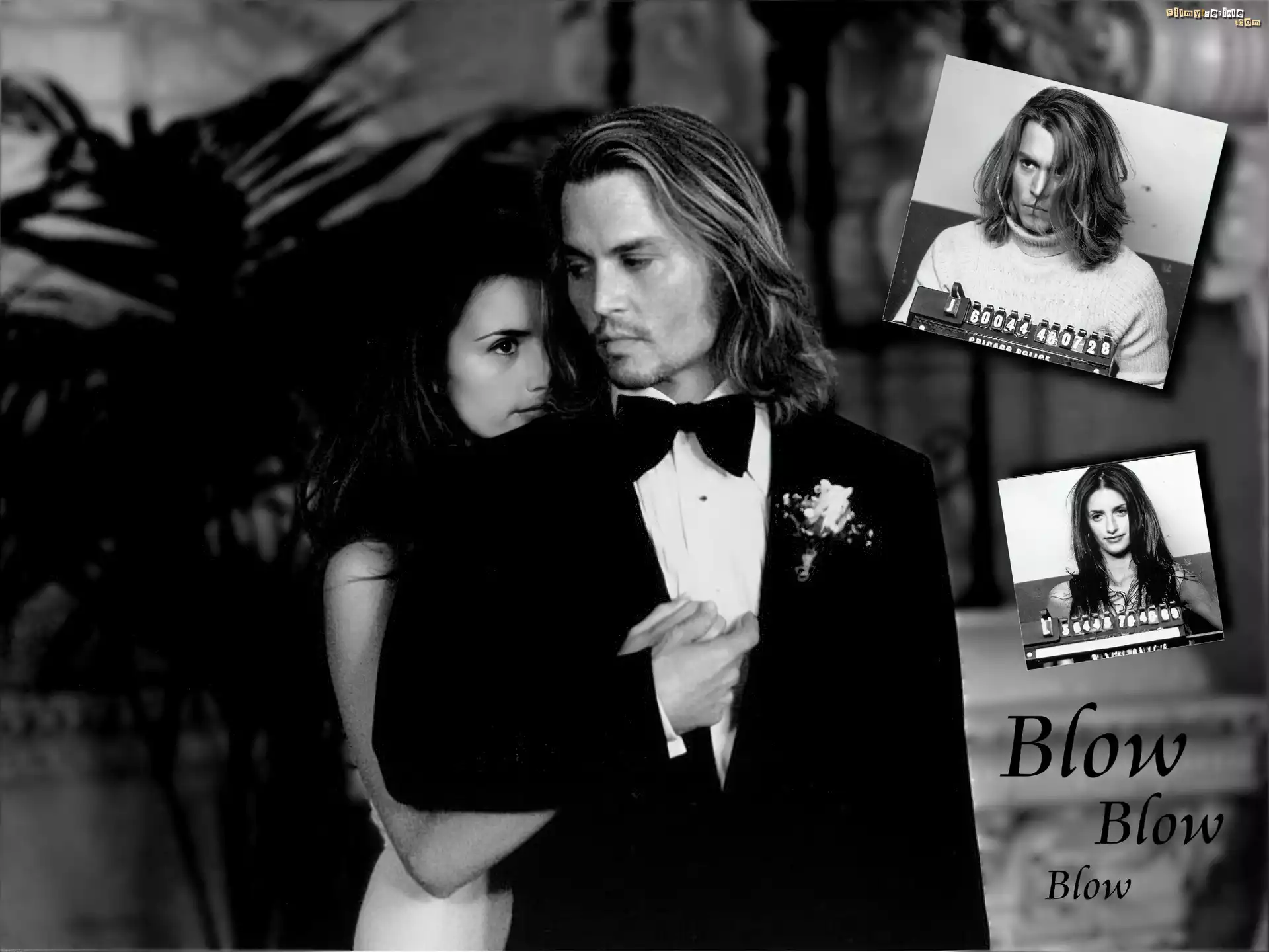 Blow, Penelope Cruz, Johnny Depp Blow, Johnny Depp, Penelope Cruz, tytuł postacie, napis, Blow, Johnny Depp