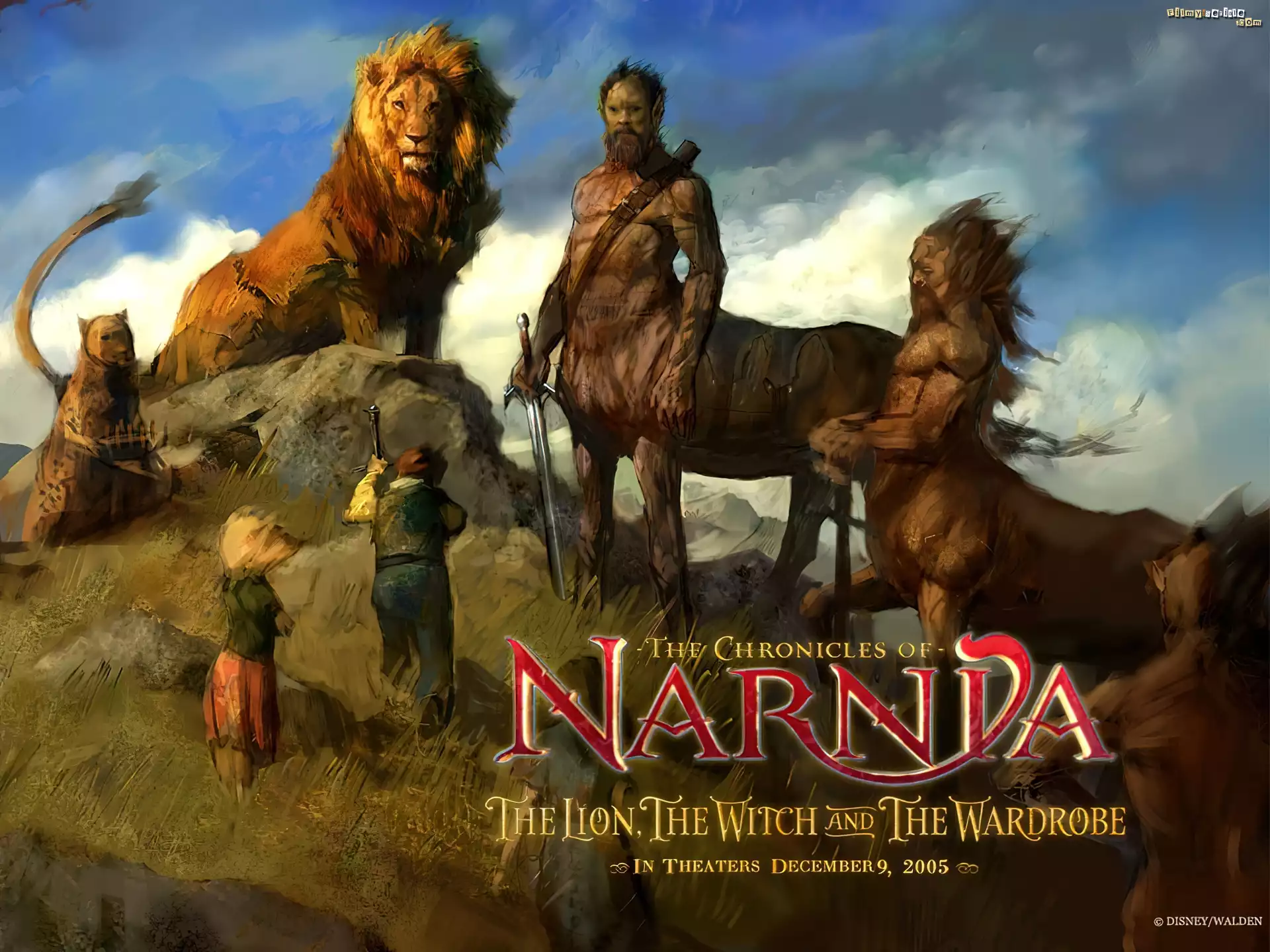 The Chronicles Of Narnia, lew, dzieci, napis, centaur