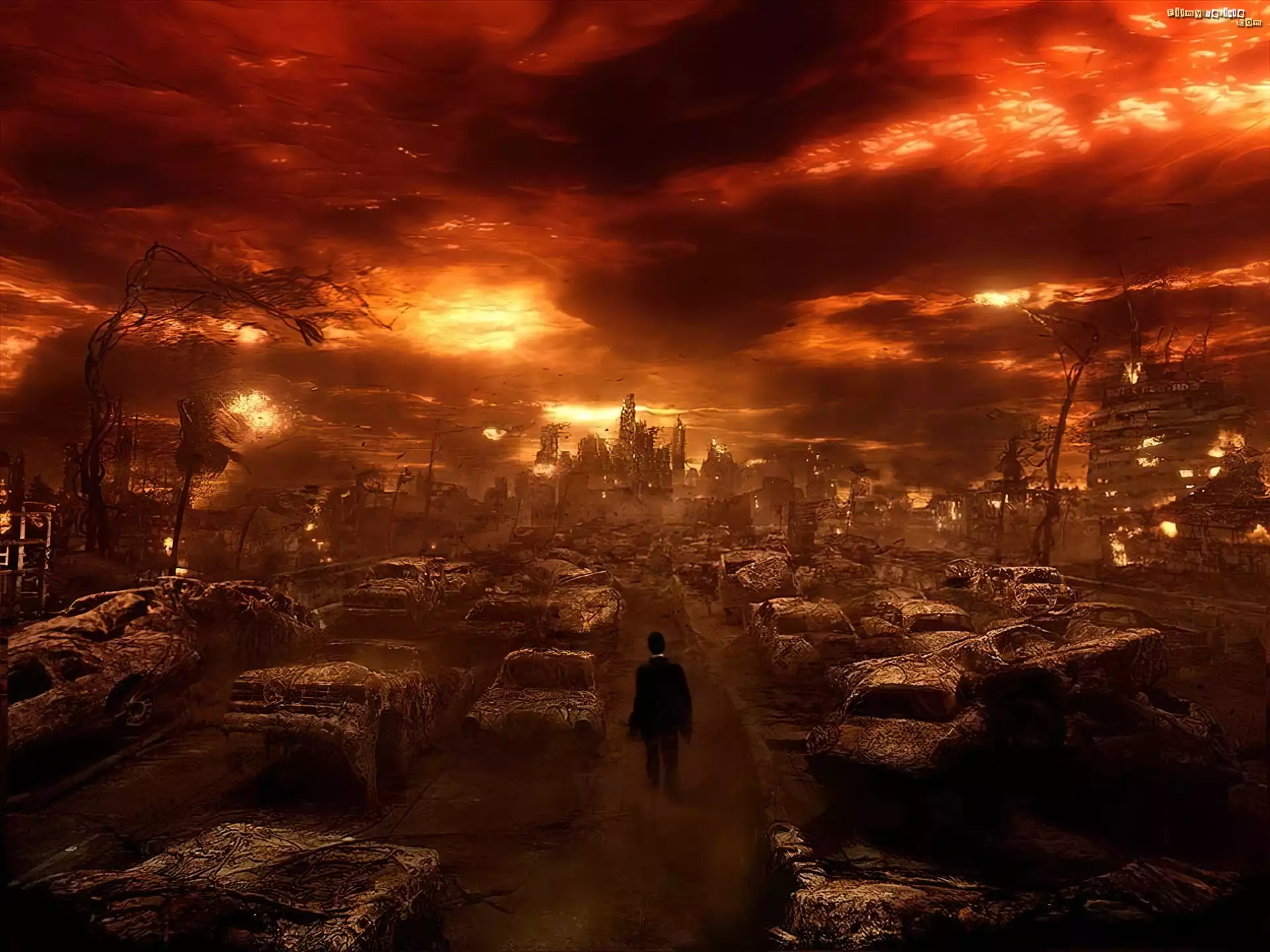 Constantine, płonące, miasto, niebo