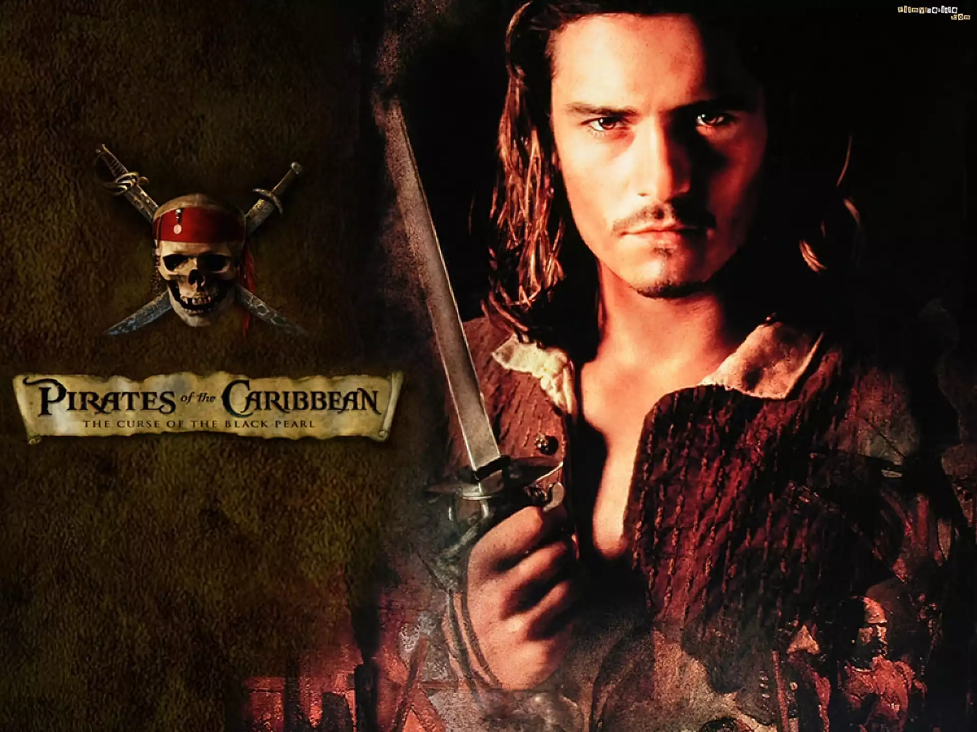 szabla, czaszka, Piraci Z Karaibów, Orlando Bloom