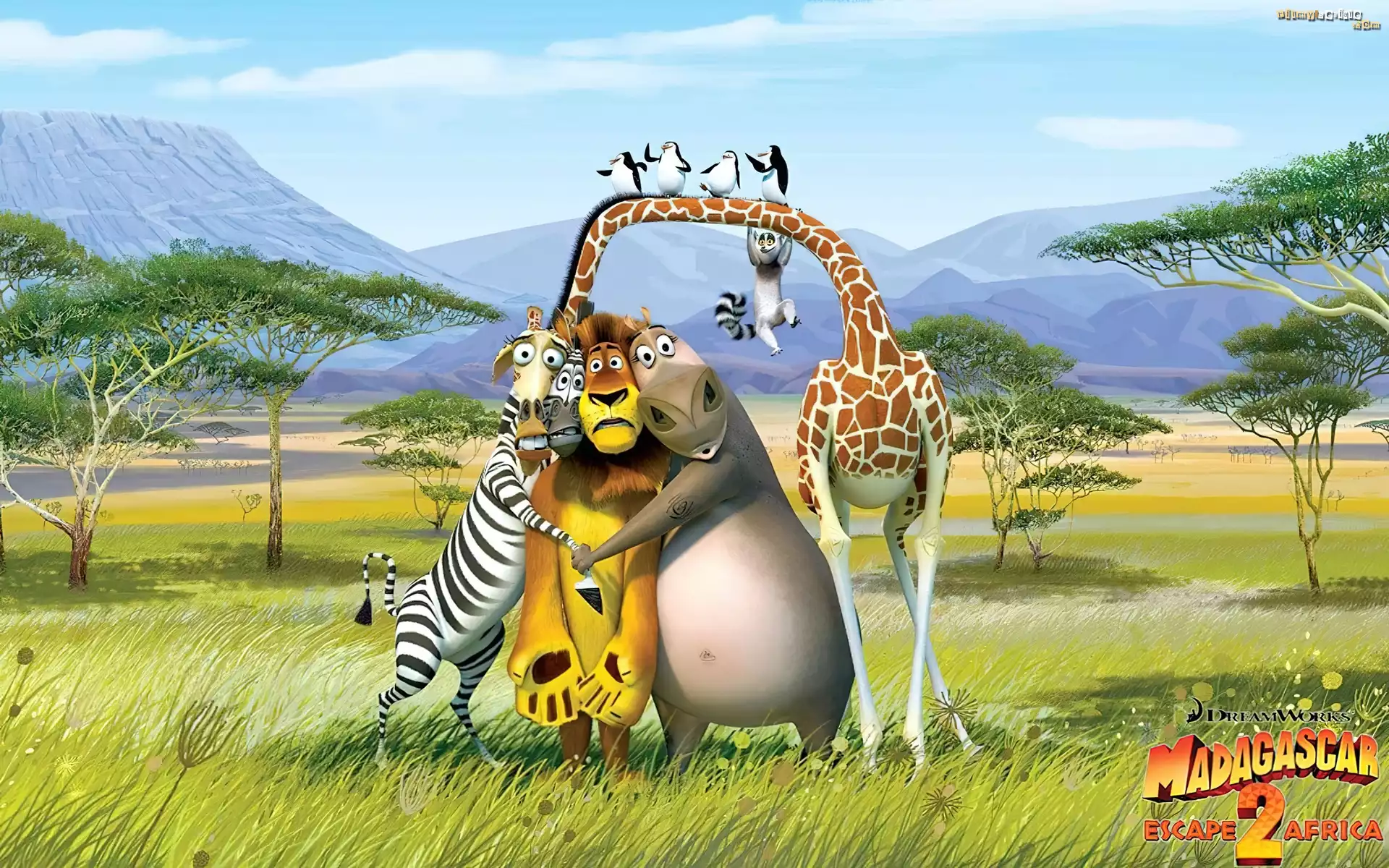 Góry, Drzewa, Madagaskar Madagaskar, Żyrafa, Zebra, Lew, Hipopotan Madagaskar 2