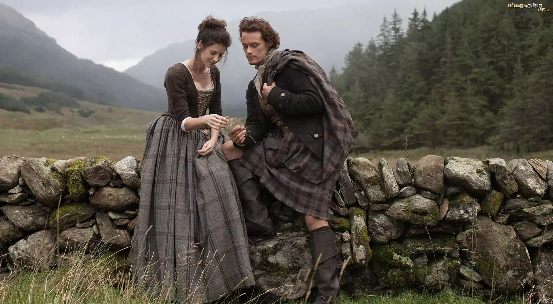 Outlander, Film, Przygodowy, Dziewczyna, Mężczyzna, Kamienny, Mur, Góry