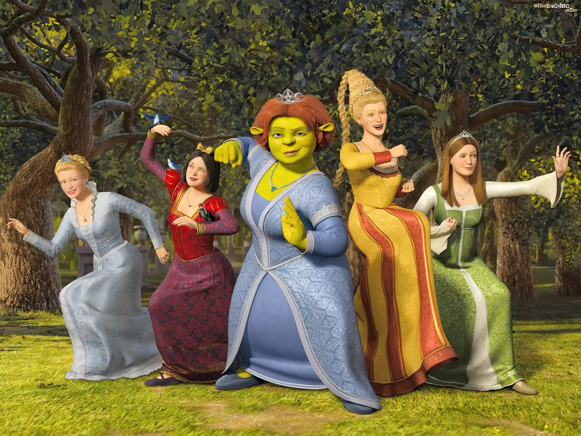 Wesoły, Shrek Shrek Trzeci, postacie, herbata Shrek, Fiona, Królewny Shrek, Fiona, Osioł miasto, postacie, Shrek 3 Shrek 3, Kot