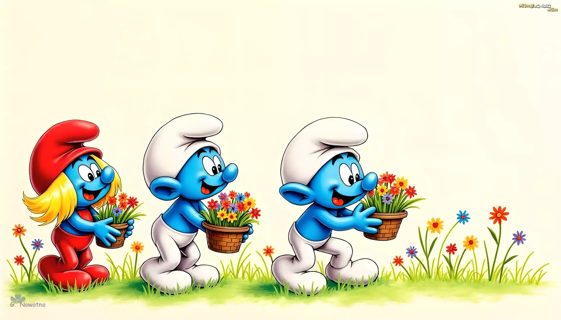 Smerfy, Koszyczki, Kwiaty, Grafika