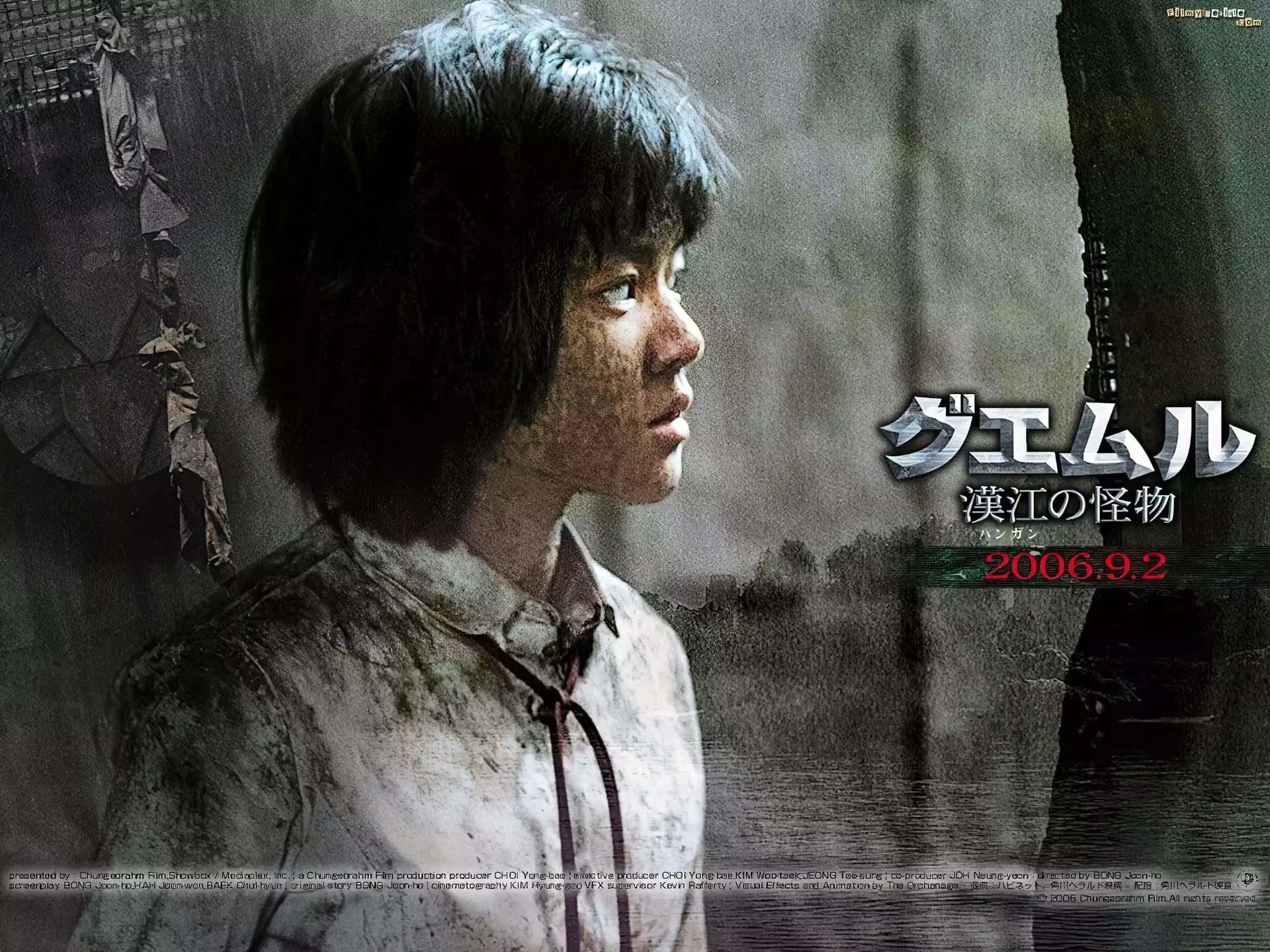 Gwoemul, Song Kang-ho Gwoemul, woda, ogon, potwora Gwoemul, Bae Du-na Gwoemul, Park Hae-il Gwoemul, Bae Du-na, brudna Gwoemul, ludzie, dziura Gwoemul, Bae Du-na, napis Gwoemul, Byeon Hie-bong Gwoemul, Azjaci, potwór, latarka Gwoemul, Bae Du-na, kanał