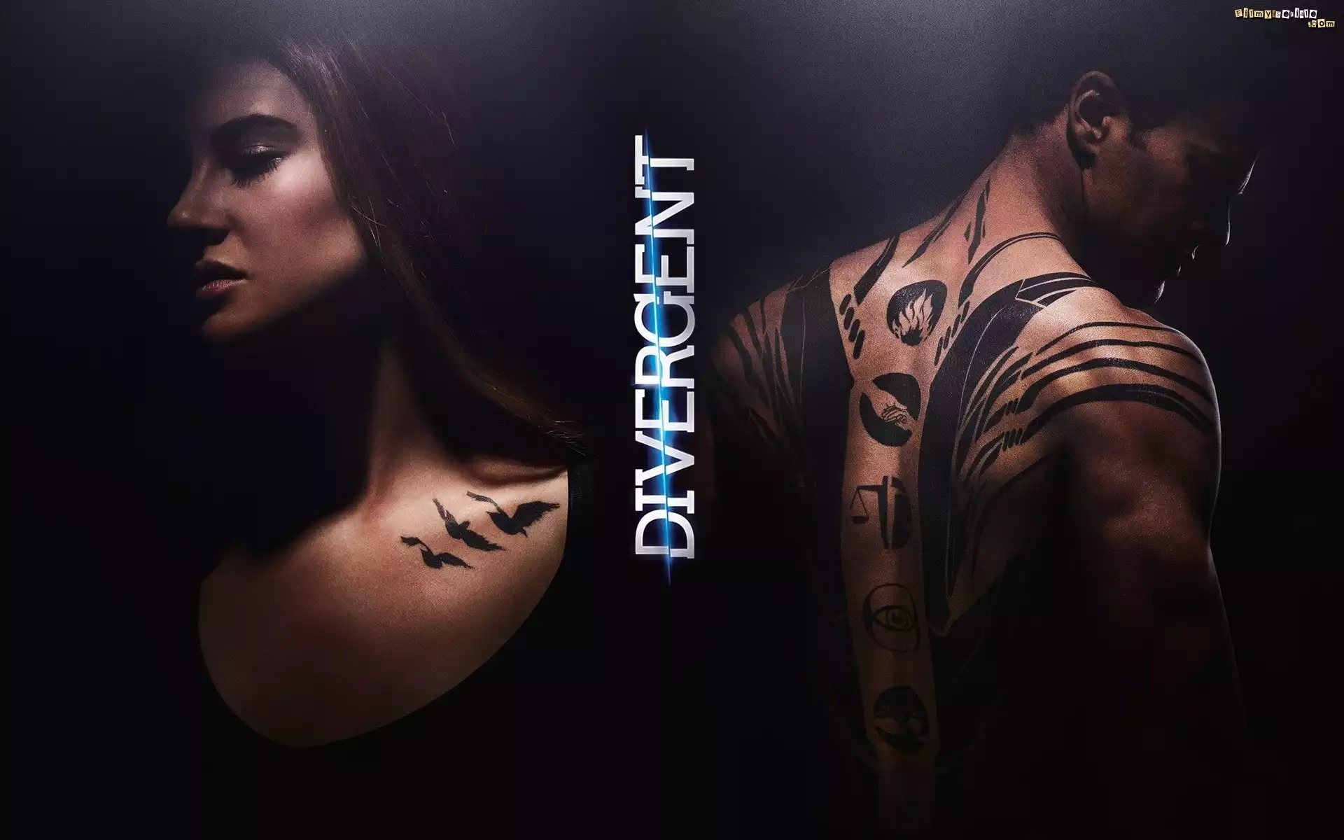 Film, Divergent, Niezgodna, Aktor, Theo James, Aktorka, Shailene Woodley, Tatuaż, Ptaki, Symbol