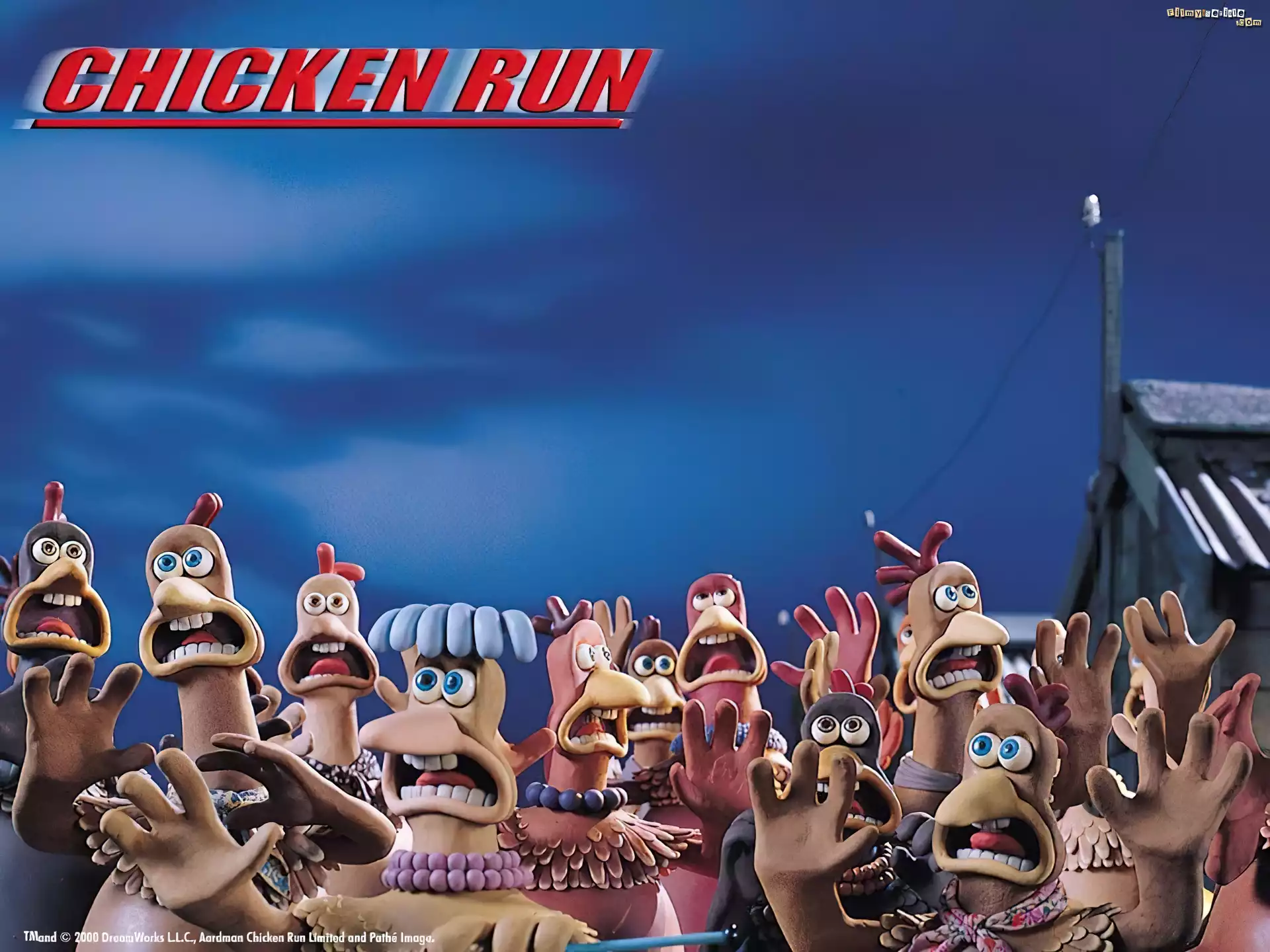 UciekajÄ…ce kurczaki, Chicken Run, przestraszone, kurczaki, dzioby Uciekajace kurczaki, Chicken Run, dach, noc kury, UciekajÄ…ce kurczaki, Chicken Run Uciekajace kurczaki, Chicken Run, kurczak, leci