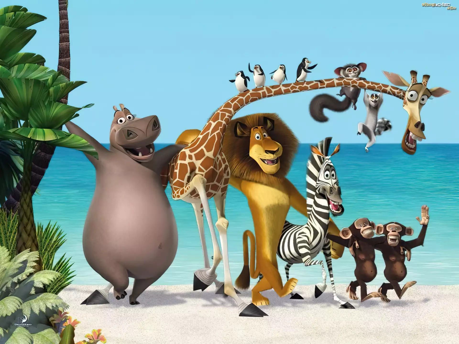 Madagaskar, Żyrafa, Zebra, Lew, Hipopotan Madagaskar 2 Góry, Drzewa, Madagaskar