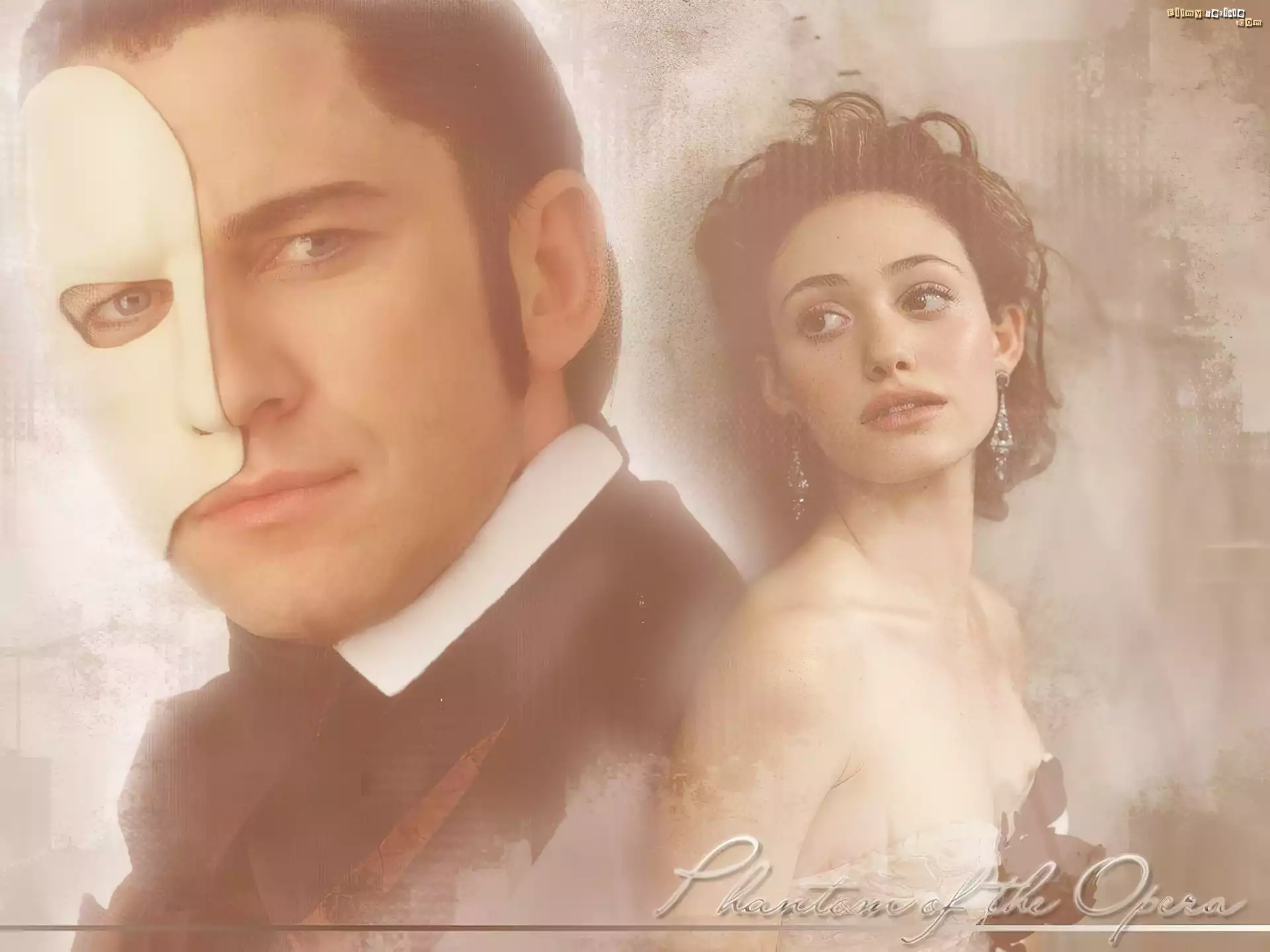 Phantom Of The Opera, Emmy Rossum, kolczyki, Gerard Butler, maska