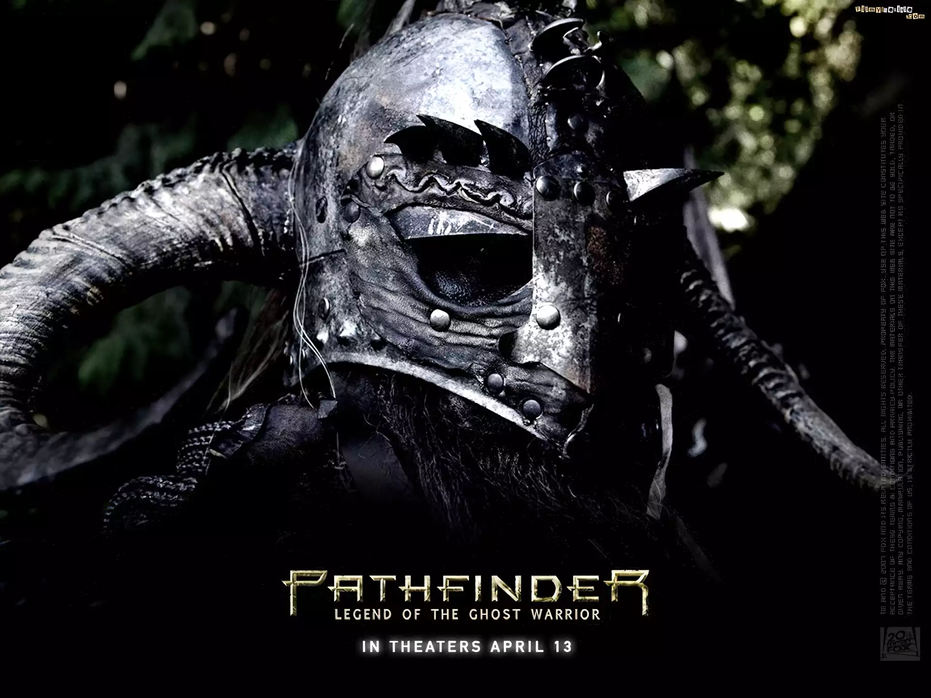 Pathfinder, rogi, zbroja, dym Pathfinder, bitwa, potwór, statek Pathfinder, maska, rogi Pathfinder, Karl Urban, noc, woda Pathfinder, woda, noc, walka, zbroja Pathfinder, koń, hełm, rogi, jeździec