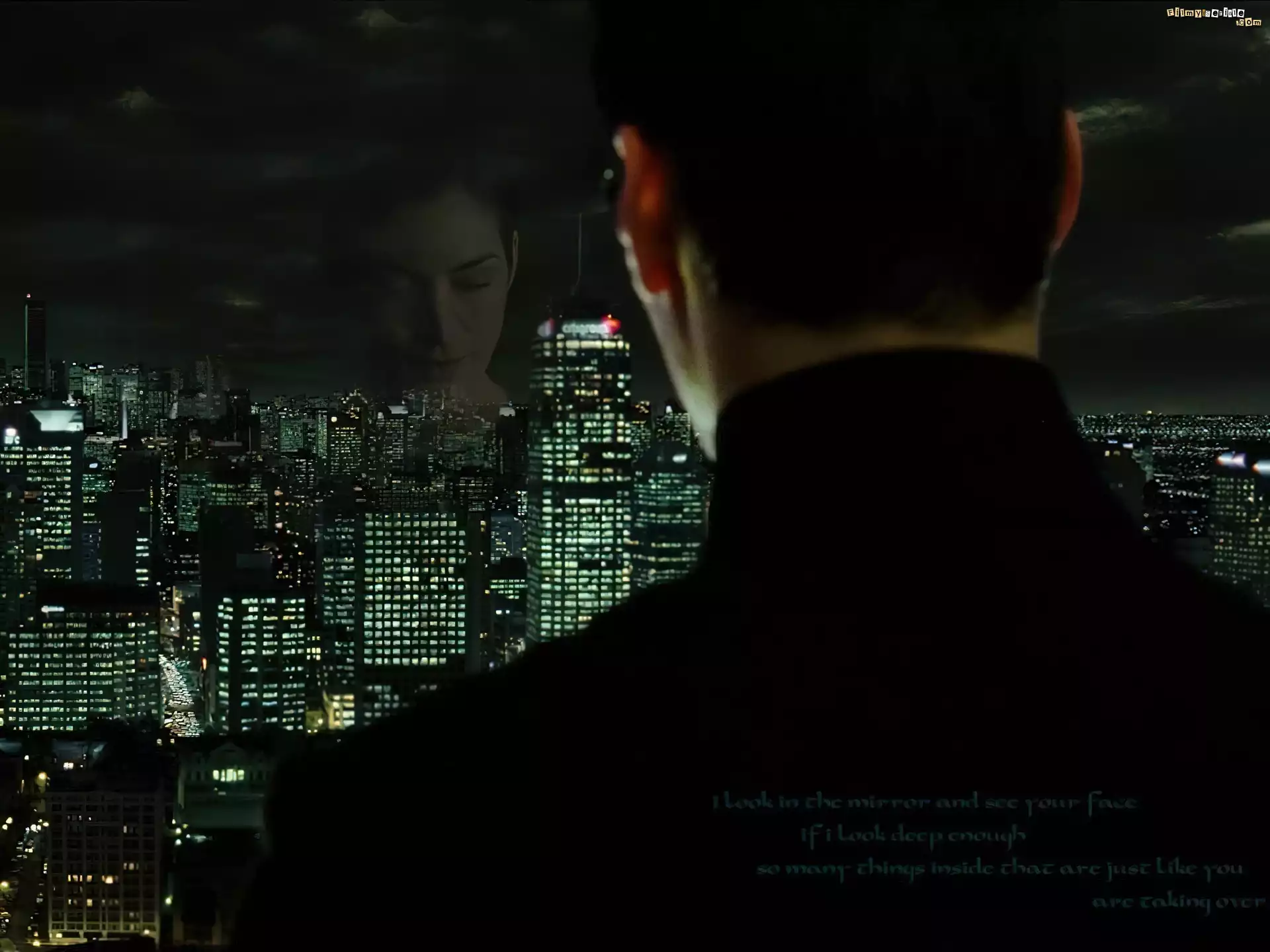 Matrix, miasto, wieżowce, kobieta, mężczyzna