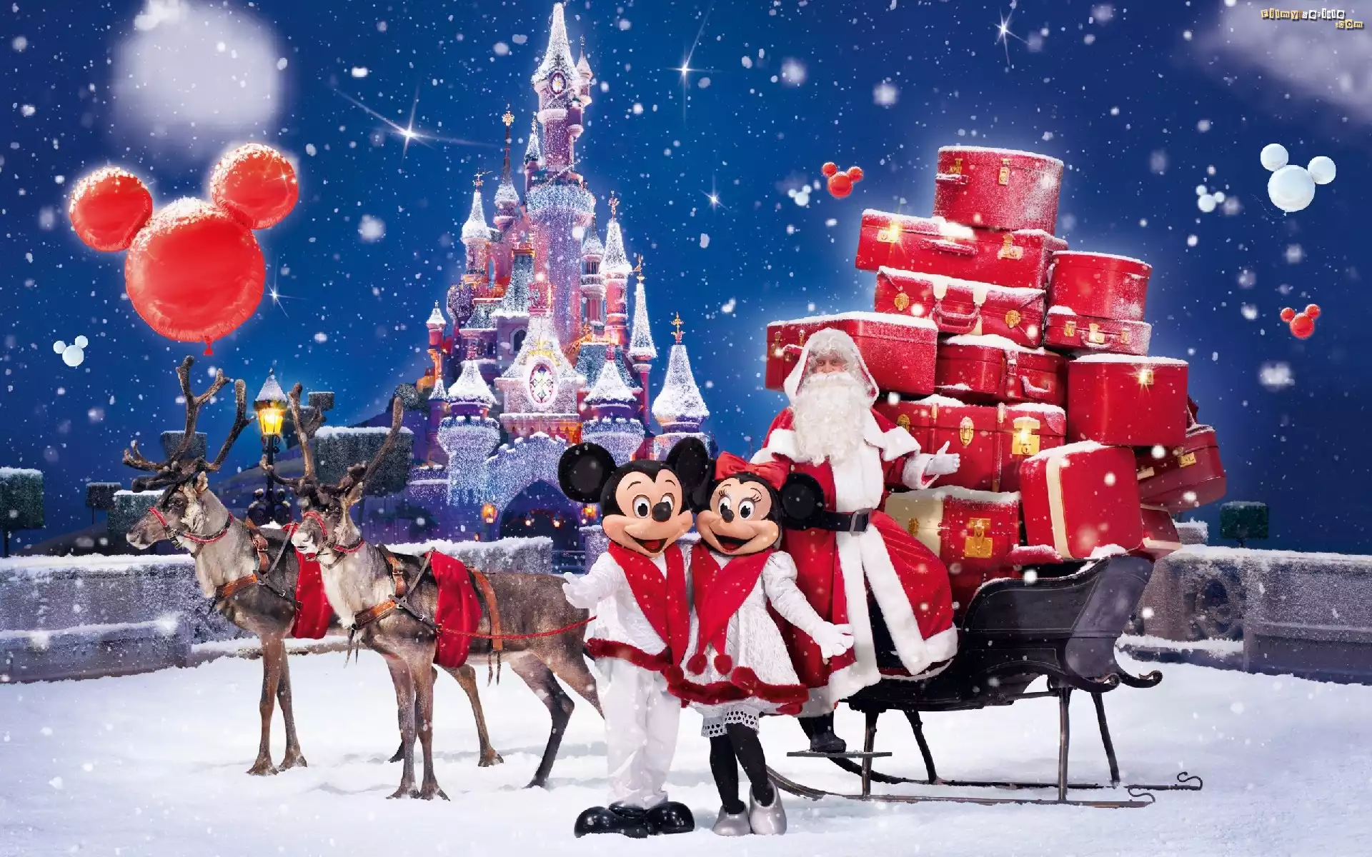 Disneyland, Mikołaj, Śnieg, Myszka, Miki, Minnie, Sanie, Renifery
