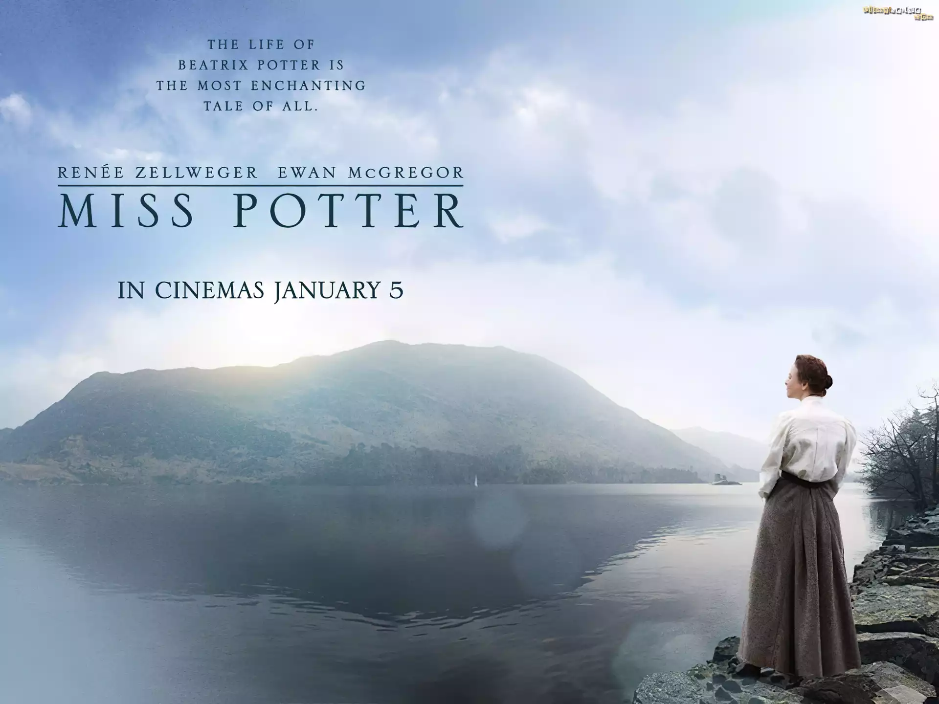 Miss Potter, Renee Zellweger, twarz, napisy Miss Potter, kobieta, rzeka, niebo Miss Potter, Ewan McGregor, garnitur