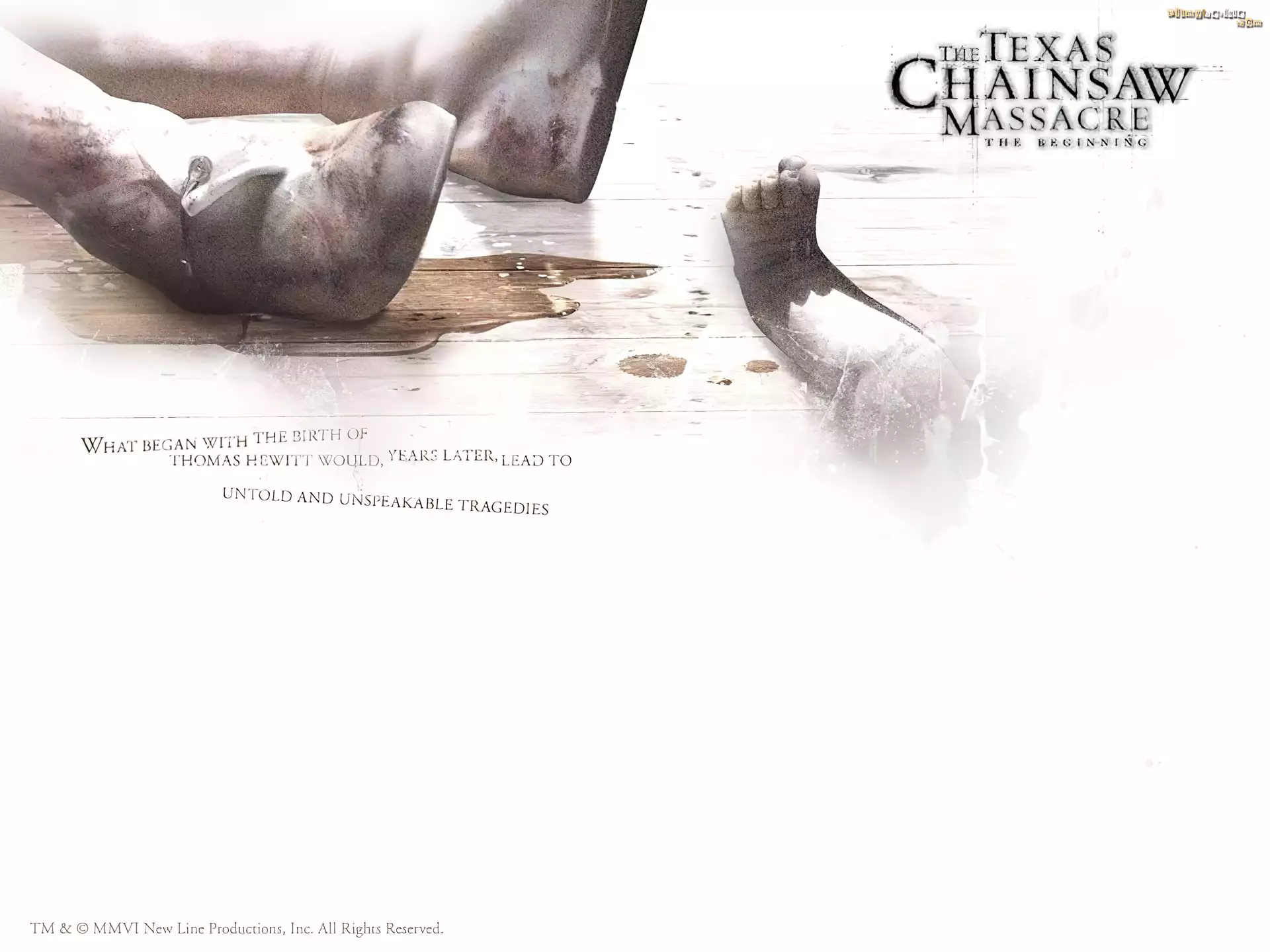 Texas Chainsaw Massacre The Beginning, stopy, nóżka, białe tło, napisy