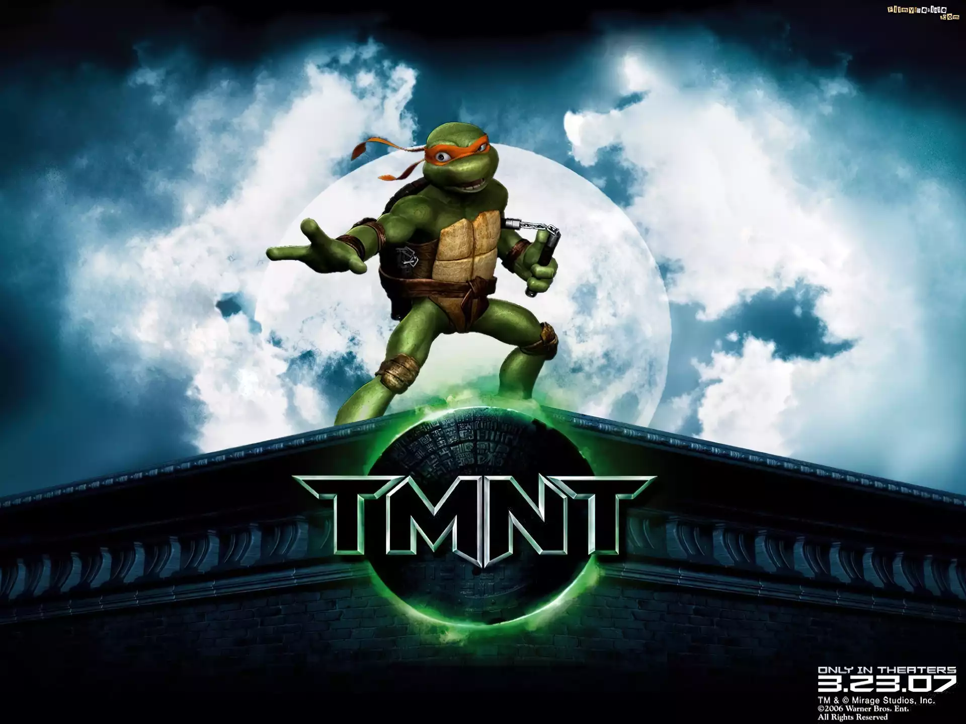 Wojownicze Żółwie Ninja, dach, księżyc, nunchaku