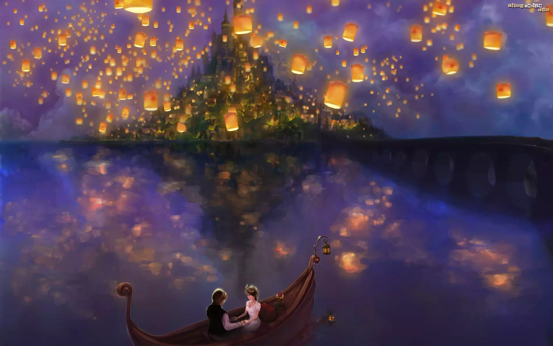 Zaplątani, Tangled, Lampiony, Łódka, Postacie