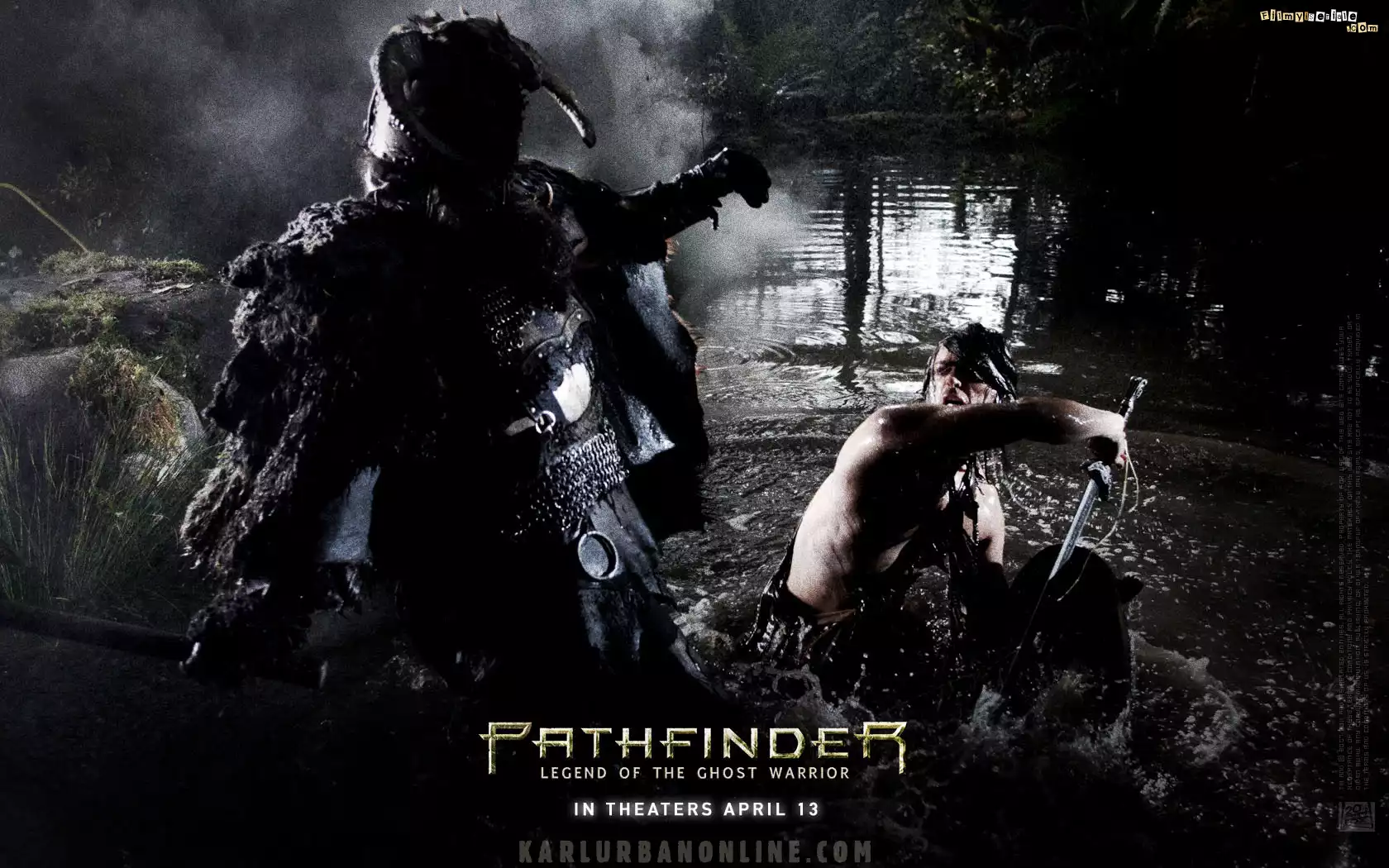 Pathfinder, Karl Urban, noc, woda Pathfinder, bitwa, potwór, statek Pathfinder, woda, noc, walka, zbroja Pathfinder, rogi, zbroja, dym Pathfinder, maska, rogi Pathfinder, koń, hełm, rogi, jeździec