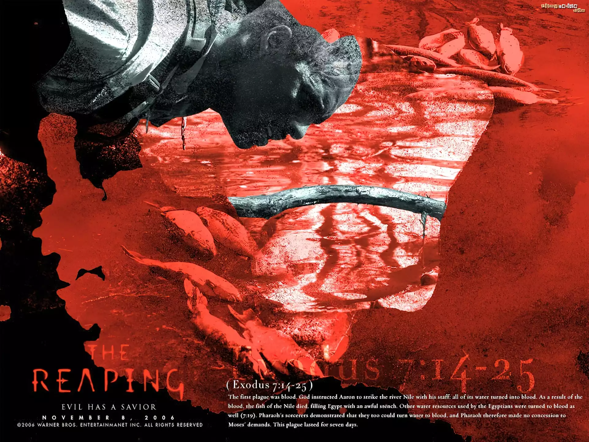 Reaping, plaga, woda, żaby Reaping, Hilary Swank, Idris Elba, krowa Reaping, mężczyzna, czerwona, woda, ryby Reaping, Hilary Swank, rysunek Reaping, trędowaci, choroba, twarz Reaping, ryba, owad, napis, plamy