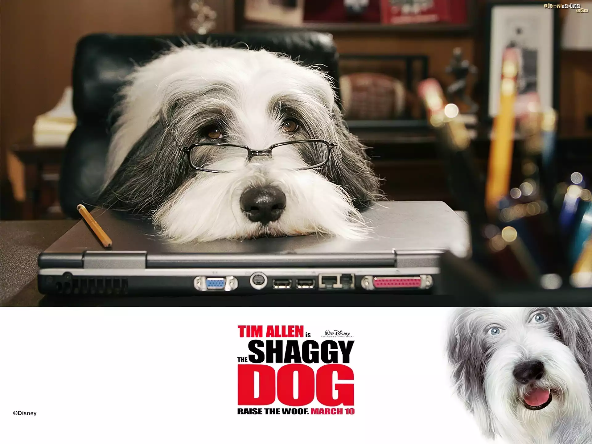 The Shaggy Dog, pies, okulary, komputer, biuro