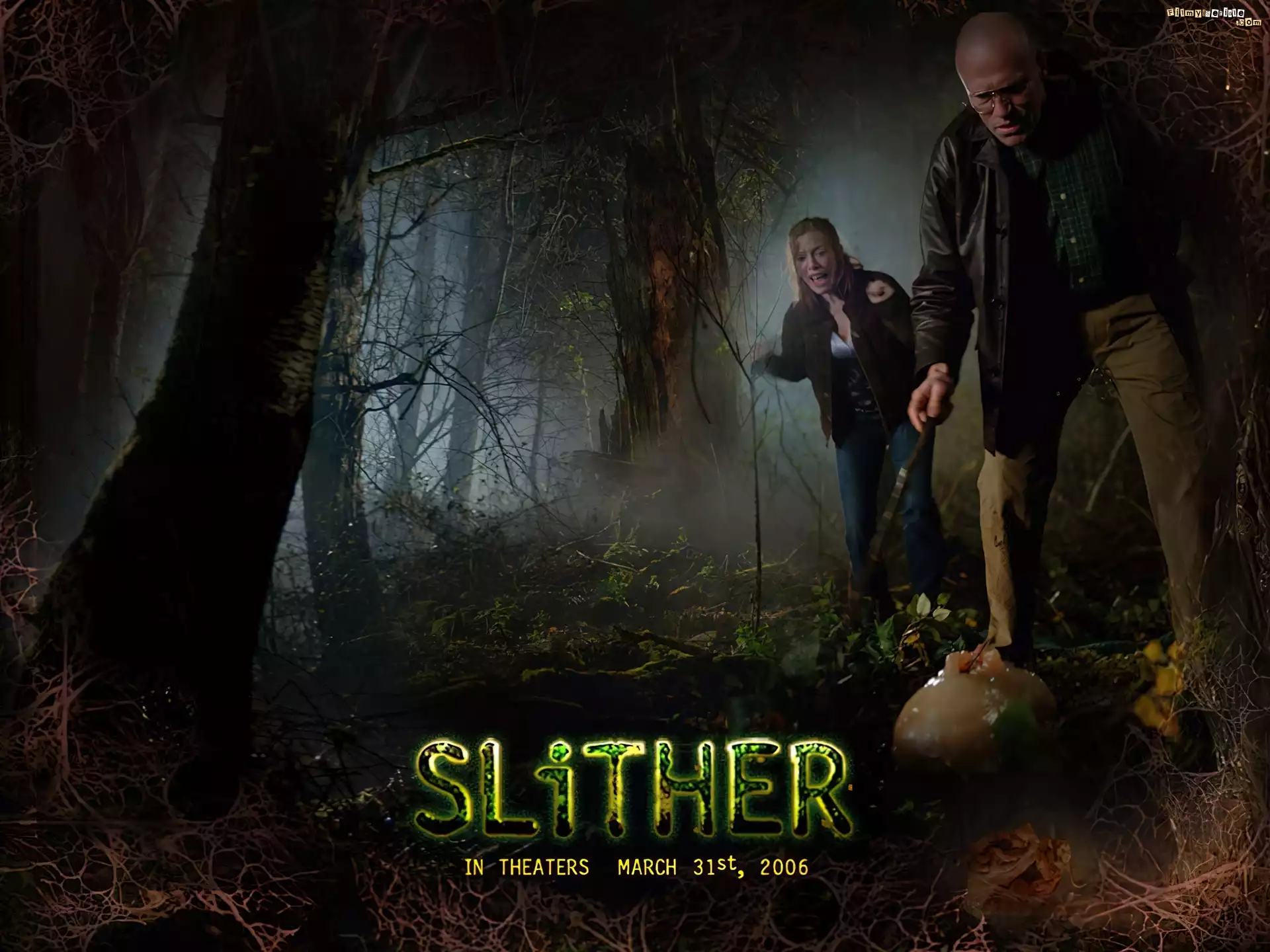 Slither, policja, dom, napis Slither, potwór, kobieta, pocałunek Slither, policja, otyła, kobieta Slither, las, ludzie, mgła, ciemno