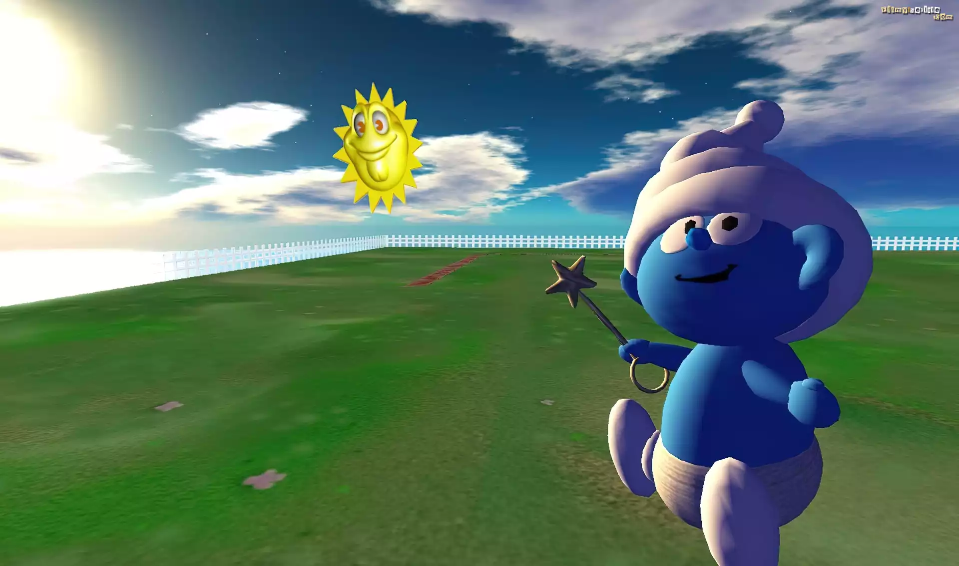 Smerfy, The Smurfs, Zielona, Trawa, Chmury