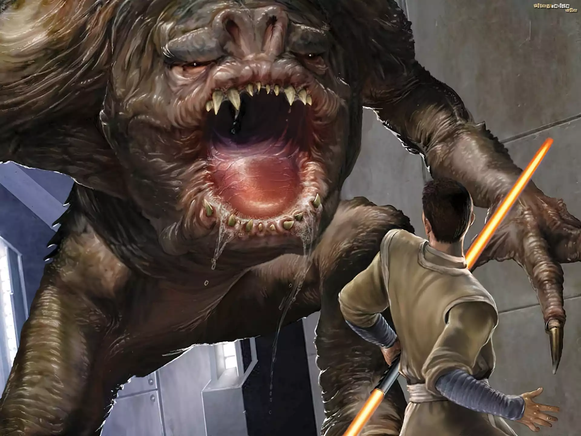 Star Wars, potwór, paszcza, ślina, chłopak