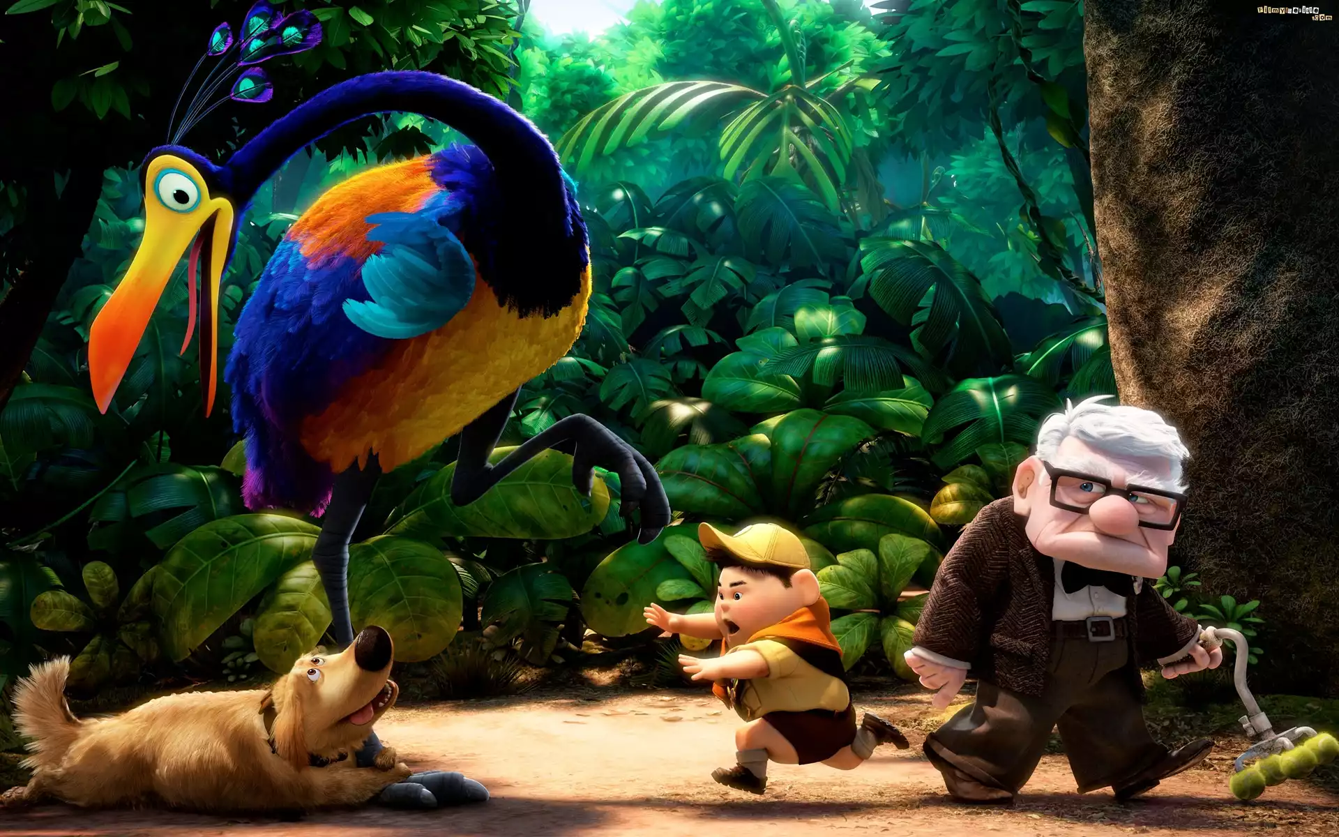 Film animowany, Up, Odlot, Dziadek Carl Fredricksen, Skaut Russell, Ptak Stefan