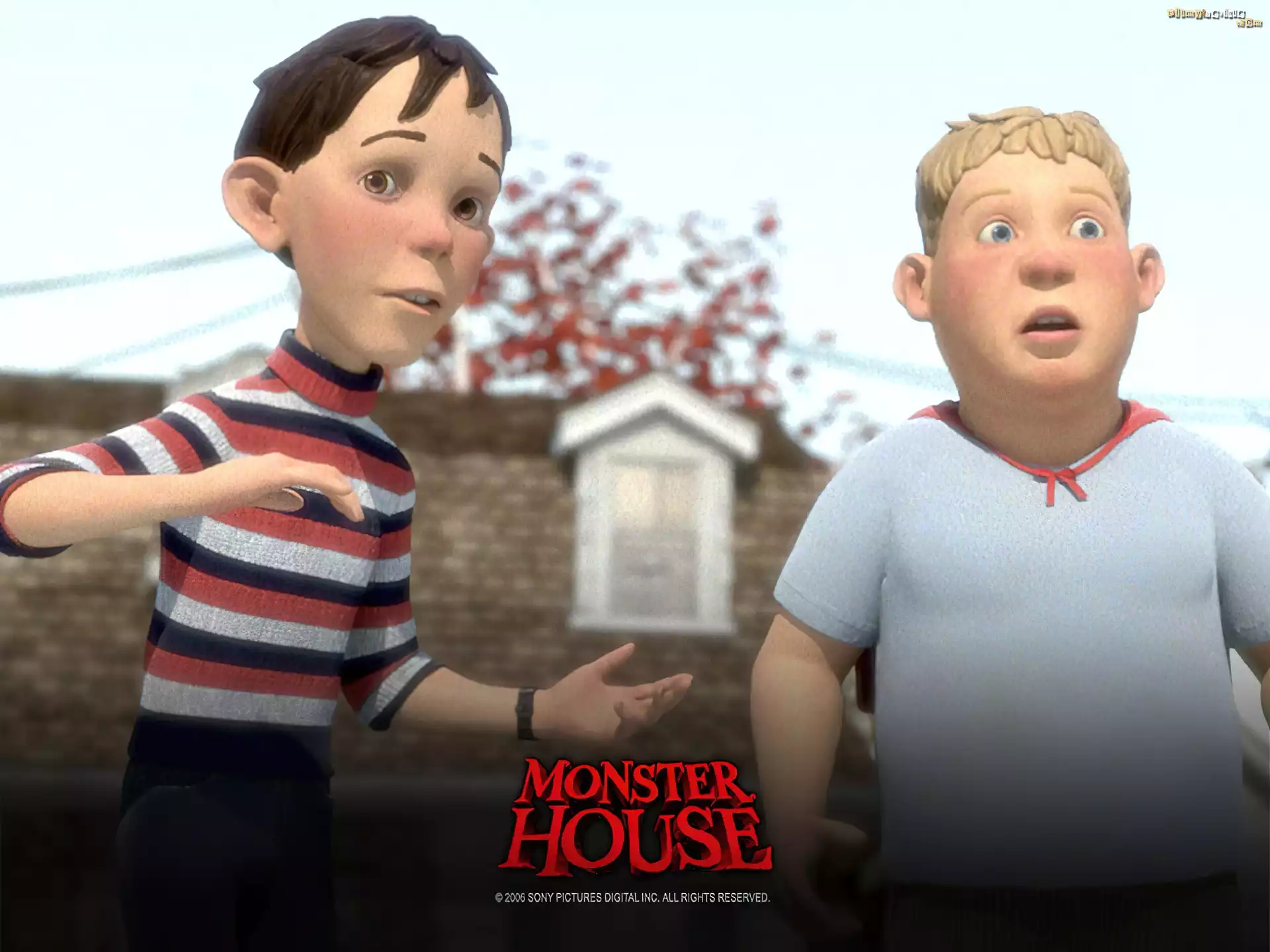 Straszny dom, Monster House, dzieci, horror chłopcy, Straszny dom, Monster house Straszny dom, Monster house, drzewa Straszny dom, Monster house, dzieci, mężczyzna Straszny dom, Monster house, okno, chłopiec ruda, dziewczynka, Straszny dom, Monster House
