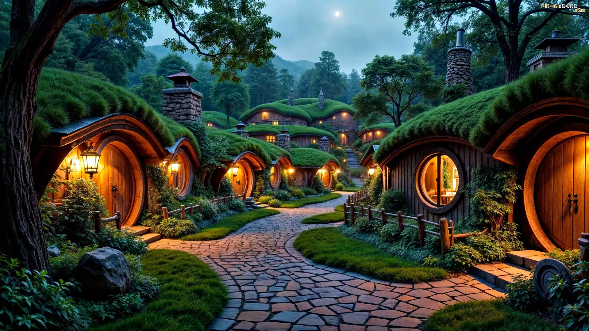 Domy, Światło, Wioska, Hobbit, Grafika