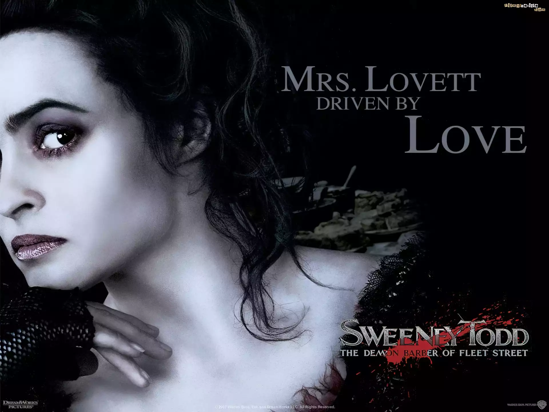 Sweeney Todd, Helena Bonham Carter, makijaż, twarz, napis