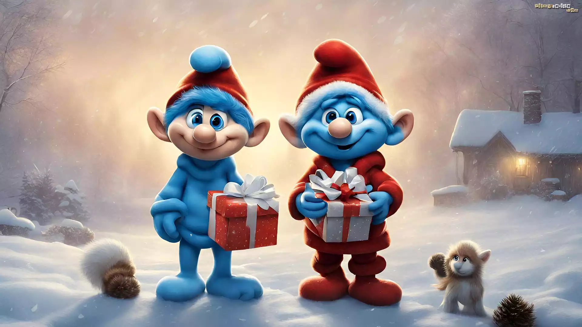 Dwa, Smerfy, Prezenty, Zima