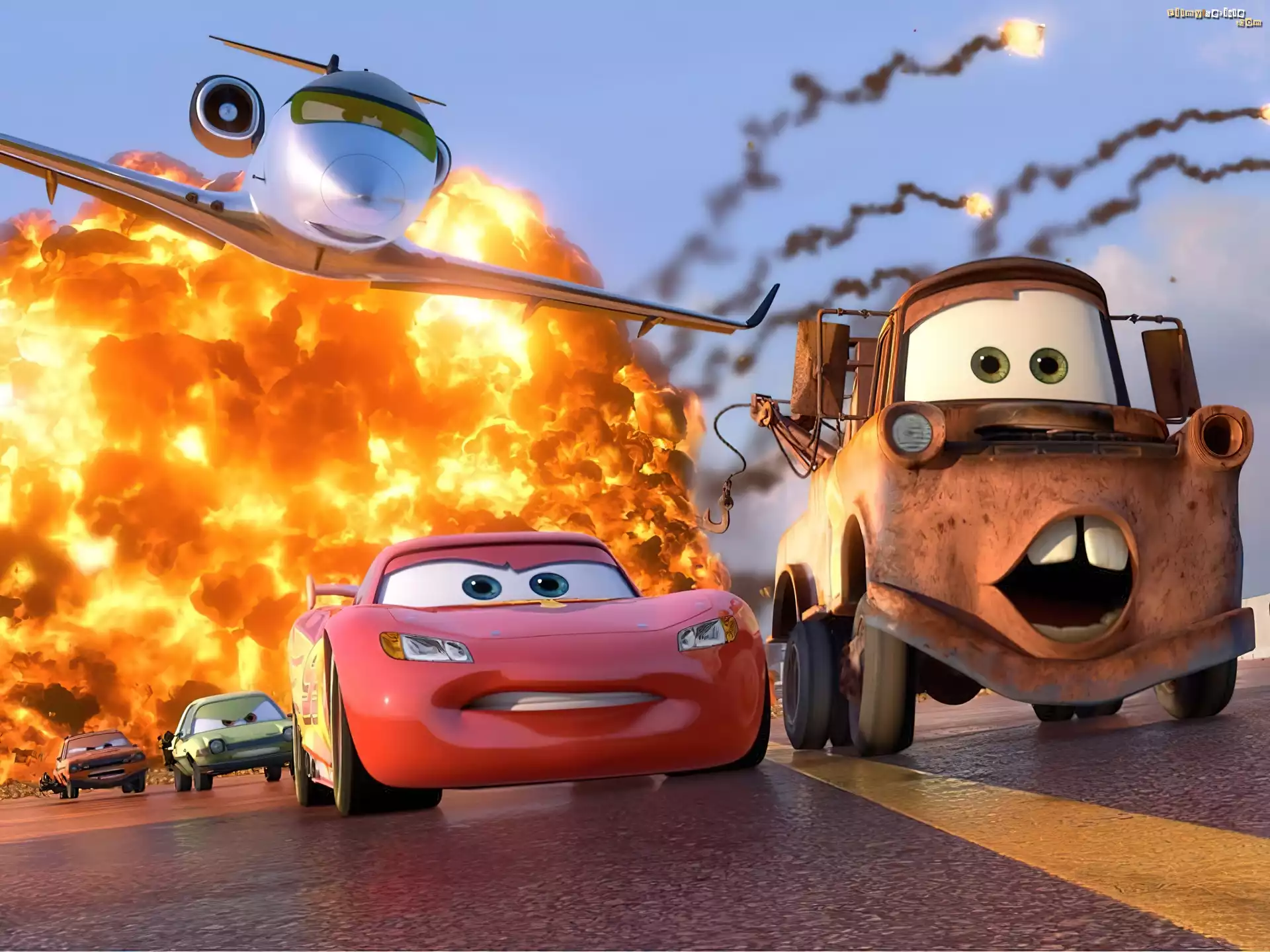 Cars, Auta, Zygzak, McQueen, Samolot, Pożar